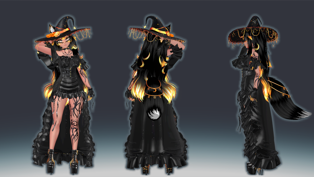 ♥ You get 2 versions of her as a VTuber! One for Halloween, one you can stream year round! These are compatible with the software VNyan, and VSeeFace! She looks just like she does in VRChat!